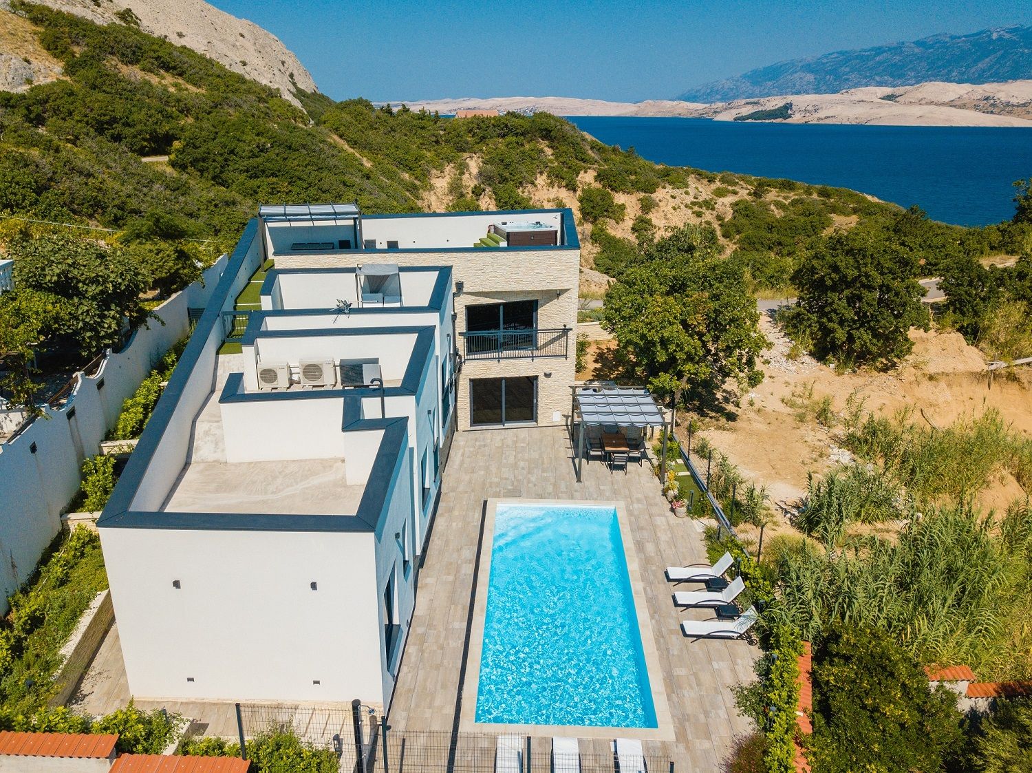 Perla Nera Heated pool & sauna Whether you're unwinding in the sauna, taking a refreshing dip in the pool, or enjoying a sunset soak in the jacuzzi, this villa promises an unforgettable experience in one of Pag Island's most picturesque locations....280 m² Perla Nera Heated pool & sauna